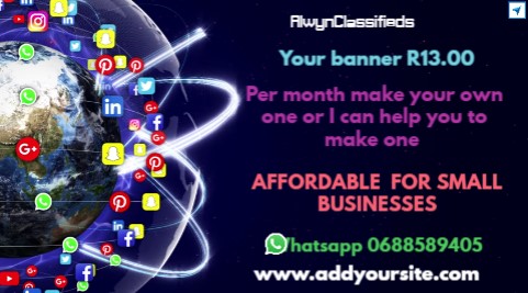 Before you pay for banner contact me first. Your need to make a banner and send it to me. If you cannot make a banner I can help you to make one. Your banner will cost R13.00 and run for 30 days. Your size of you banner may not be bigger than size below.Your banner vew words, Image, link and contact details.